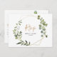 Diseñada para coordinar con nuestra colección de bodas de vegetación mixta, esta tarjeta RSVP de personalizable presenta un marco geométrico dorado adornado con follaje de color verde acuático con texto dorado y gris. Para realizar cambios avanzados, vaya a la opción "Hacer clic en el personalizar más adelante" en Personalizar esta plantilla.