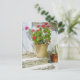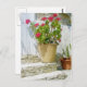 Geranio de color rojo en flor frente a la pared de piedra en Chipre