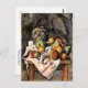 Postal de arte fino con la pintura de la vida muerta del artista francés Paul Cezanne (1839-1906) titulada Ginger Jar y Fruit (1895). Un gran frasco de gres colocado sobre una mesa con fruta dispersa, peras y manzanas.