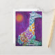 Un colorido bebé de la jirafa arcoiris pintado en un fondo morado texturado. Arte original de Laura Barbosa.