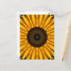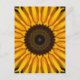 La imagen de un hermoso girasol se altera para crear pétalos perfectamente simétricos y precisos. En la parte trasera hay hojas grises y rojas de un boquete de otoño.