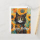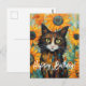 Envía cálidos y sinceros deseos de cumpleaños a los amantes de los gatos en tu vida con esta encantadora tarjeta postal personalizada. La tarjeta postal presenta una encantadora impresión abstracta con un dulce gato rodeado de grandes girasoles, todo bellamente representado en un estilo de pintura de pinceladas grandes y expresivas al óleo. Los colores vibrantes y el diseño juguetón la convierten en una opción perfecta para cumpleaños y otras ocasiones especiales. Puedes personalizar la tarjeta postal agregando un nombre o cualquier texto deseado, creando un saludo único y memorable. Ya sea cerca o lejos, esta tarjeta postal con tema de gatos traerá alegría y sonrisas al día del destinatario. ¡Celebra su amor por los gatos con esta tarjeta postal de cumpleaños personalizada!