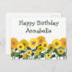 Un bonito campo de girasoles amarillos decora debajo de tu mensaje personalizado de Feliz Cumpleaños. Una hermosa tarjeta postal de cumpleaños floral para un amigo alegre y feliz. Personaliza tu propio mensaje encima del diseño floral.