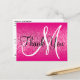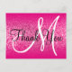 Crea tu propia tarjeta postal elegante de agradecimiento con monograma y efecto de brillo falso rosa intenso ombre.