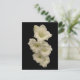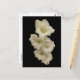 Esta elegante postal presenta preciosos y puros gladiolas blancos. Los pétalos deslumbrados destacan sobre un fondo negro puro.