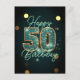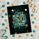 Celebre un hito significativo con esta llamativa tarjeta postal de cumpleaños número 50. Su fondo azul teal rico y profundo, que brilla con luces suaves de bokeh y destellos sutiles, establece un escenario sofisticado. El diseño está dominado por un magnífico '50', delineado audazmente en dorado radiante y relleno con un intrincado mosaico azul teal y blanco, que captura verdaderamente la esencia de medio siglo. La elegante letra script azul teal enmarca artísticamente esta figura central, declarando 'Feliz Cumpleaños'. Cada elemento del texto en esta tarjeta postal es completamente personalizable, lo que le permite personalizar nombres, fechas o un mensaje único y crear un recuerdo verdaderamente memorable.