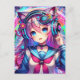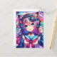 Anime glitchcore chica con audífonos y orejas de gato colorido arte ai púrpura, rosa, azul y verde.
