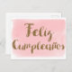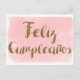Postal Glitter Dorado Acuarela Rosa Feliz Cumpleanos