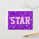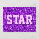 Postcard con un diseño moderno con estrellas diseminadas sobre un estilizado fondo de "secuin look" y "STAR" en tonos violeta y lila. Se puede usar como fondo para tu propio texto, imágenes e ideas. Tenga en cuenta que se trata de una imagen de arte digital impresa, que no brilla ni contiene purpurinas o secuencias reales.