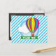 Guay, diseño de globo aerostático rojo, verde, azul, rosa, púrpura y amarillo para niños coloridos sobre el patrón de rayas azules y blancas en el cielo. ¡Un regalo perfecto para el bebé, el niño, los niños, los adolescentes o los adultos! Personalizó el diseño agregando el nombre o el texto personalizado de un niño. Visita nuestra tienda, Birthday Party House, para más grandes productos de personalizable y chica!