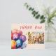 Tarjeta postal de agradecimiento de cumpleaños infantil con globos coloridos. Tarjeta de agradecimiento de cumpleaños para la fiesta de cumpleaños de los niños. Este diseño viene con hermosos globos en diferentes colores con aspecto de acuarela. Personaliza la tarjeta postal con el nombre de tu hijo, mensaje de agradecimiento y foto.