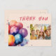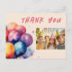 Tarjeta de agradecimiento de cumpleaños infantil con globos coloridos. Tarjeta de agradecimiento de cumpleaños para la fiesta de cumpleaños de los niños. Este diseño viene con hermosos globos en diferentes colores con aspecto de acuarela. Personalice la tarjeta con el nombre de su hijo, mensaje de agradecimiento y foto.