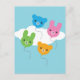 Un conejito colorido y feliz y globos de oso flotando en un cielo azul turbio.