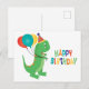 Postal Globos de Cumpleaños Dinosaurio Feliz Cumple