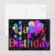 Postal Globos de cumpleaños felices de confeti de estrell