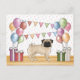 Postal Globos de cumpleaños pastel coloridos perro pug ce