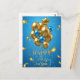 Celebra con estilo con esta tarjeta postal personalizable vibrante y festiva, perfecta para cualquier ocasión de cumpleaños. El diseño presenta un impresionante arreglo de globos dorados y azules, con un globo en forma de estrella en la parte superior, todo sobre un fondo azul animado. El confeti dorado añade un toque extra de celebración, lo que hace que esta tarjeta postal sea verdaderamente llamativa. El texto "Feliz cumpleaños para ti" se muestra elegantemente en una mezcla de fuentes en negrita y manuscritas, creando un mensaje dinámico y alegre. ¿La mejor parte? El texto es totalmente personalizable, lo que te permite agregar un toque personal para hacer que el día especial de alguien sea aún más memorable. Ya sea que envíes deseos de cumpleaños a un amigo, familiar o colega, esta tarjeta postal seguramente les hará sonreír.