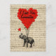 Funny ilustracion de animales de elefante vintage lindo y románticos globos con forma de corazón de valentinas rojas sobre un fondo de papel antiguo con me encanta el texto personalizado. Visite la tienda VINTAGEPRINTS para encontrar productos a juego y productos de inspiración más vintage y retro.