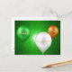 Un ilustracion del Día de San Patricio: 3 globos en el color verde de la bandera irlandesa, blanco, naranja con el texto "Feliz Día de San Patricio" en letras doradas sobre un fondo verde con brillantes estrellas.