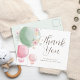 Tu invitado del baby shower amará esta tarjeta postal de agradecimiento con globos de acuarela y un mensaje moderno y personalizable en la parte posterior.