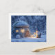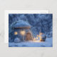 Postal Gnome with a Lantern Outside a Snowy Stone Hut