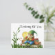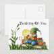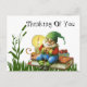 Una adorable tarjeta postal de 'pensando en ti' de un gnomo lindo sentado en sus libros.