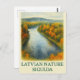 Captura la serena belleza de la naturaleza letona con esta postal al estilo acuático que presenta el icónico río Gauja serpenteando a través del vibrante bosque otoñal de Sigulda. Los ricos tonos de oro, naranja y verde profundo celebran el mágico encanto del paisaje de otoño de Letonia. Un perfecto regalo para los amantes de la naturaleza y de los viajes.