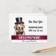 Una manera divertida y adorable de pedirle a tu hermano que sea tu padrino con esta imagen de un perro de recuperación de oro / labrador que se ve muy delgado con un sombrero de tope negro y corbata de arco burdeos sentada detrás de una banda de marrones horizontales contra un fondo blanco. Las plantillas de texto en negro para la redacción de su personalizado aparecen a la derecha del perro mascota que puede ser personalizado para ajustarse a los requisitos de su boda. Son ideales para que un novio pida a su equipo que lo apoye en su camino para convertirse en marido.