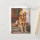 Esta postal presenta a un atractivo golden retriever esperando a que su dueño llegue a casa.
