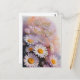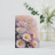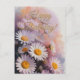 A stunning vertical digital illustration of a cheerful birthday greeting design. The design features a lush bouquet of white and pale pink daisies with vibrant golden-yellow centers. Overlaid on the upper half of the image is the text "Happy Birthday!" written in an elegant, embossed golden cursive script. The background is a dreamy, painterly blend of peach, lavender, and soft blue brushstrokes, creating a warm and festive atmosphere.