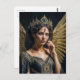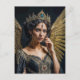 dark angel queen with golden wings and a golden crown, wearing a black and gold dress, exuding a regal and mystical aura.
