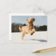 El goldendoodle entusiasta corre felizmente a través de un campo de nieve fresca a finales del invierno.