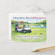 Featuring a bright watercolor illustration of a patriotic golf cart on the course—complete with American flags, golf clubs, and a rack of beer—this design captures the fun, relaxed spirit of a summer golf celebration.