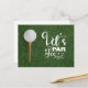 Prepárate para jugar con esta divertida postal que incluye una pelota de golf sobre un verde césped vibrante y la divertida frase "Par-Tee". Perfecto para enviar invitaciones a torneos de golf, fiestas de cumpleaños o cualquier celebración con un toque deportivo. Personalizar para tu evento especial o simplemente comparte algo de alegría relacionada con el golf!