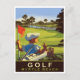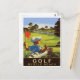 El niño está explorando el viento en el terreno del golf, en la playa de Myrtle. Postal de viaje de vintage