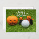 Postal Golf Feliz Halloween con calabaza y bolas de golf
