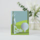 Esta increíble postal de golf cuenta con una fantástica imagen de un golfista y un gran baloncesto con el golf de texto frente a un impresionante fondo verde de colina, perfecto para todos los amantes del golf y espacios al aire libre.