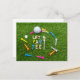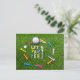 Esta divertida y festiva tarjeta postal de fiesta con temas de golf es perfecta para invitar a amigos y familiares a su próxima gran salida de golf. Cuenta con tees coloridos y una bola de golf en la parte delantera, y mucho espacio en la parte trasera para que puedas escribir tu propio mensaje personalizado.