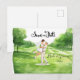 Announce your big day in timeless golf-inspired style with this elegant Save the Date postcard featuring a romantic bride and groom standing together on the putting green. Designed for golf-loving couples, this charming illustration blends country club sophistication with heartfelt celebration.