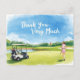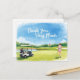 Celebra tu amor por el juego con esta elegante Woman Golfer con carrito de golf en Green Postcard! Esta acuarela, que cuenta con una elegante juerga femenina, cautiva la belleza y la tranquilidad de un día de golf perfecto. El diseño destaca las suaves texturas acuáticas, las exuberantes calles y el ambiente sereno, ideal para los amantes del golf, los jugadores o cualquier persona que disfrute enviando un elegante agradecimiento o nota desde el campo.