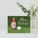 Feliz Navidad con muñeco de nieve y tarjeta de pelota de golf sobre fondo de césped verde