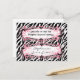 Este adorable patrón de impresión de cebra de mariposa de Girly Zebra Print Pattern Animal Goody Bag Topper es una adición perfecta a cualquier ducha de bebé o fiesta de cumpleaños. Simplemente doblar en el medio, y colocarse en la parte superior de la bolsa llena de goody (puede usar una bolsa de cierre postal o una bolsa de celofán) y acoplarse con pequeñas grapas en las esquinas inferiores. Estos se imprimen a un tamaño de 4,25" x 5,6" en peso ultra pesado brillante de 120 lb. material de cobertura (material de tarjeta). Tenemos una línea entera dedicada a este diseño aquí en el zazzle store bajo la pestaña * Diseño Colecciones del menú para incluir invitaciones (5x7), Etiquetas de retorno, Etiquetas de correo, Sellos para sobres, estampillas de rehenes, Tartas de copa, Envolturas de botellas de agua, Hershey's 1.55 oz. Envolturas para barra grande, Pegatinas en miniatura de Hershey, Envolturas para bolsitas de palomitas de microondas, Tarjetas para lugares escribibles, Toppers para bolsitas de goody, Tarjetas de agradecimiento FLAT (4x5), Tarjetas de agradecimiento FOLDED (4x5), Etiquetas de favoritos, Tarjetas de menú, libros de papel, Tapas de ligas, Tarjeta de bingo Marcadores, Hojas de llamadas con tarjeta de bingo, tarjetas de consejo para escritura (4x5), etc.