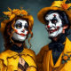 Gorra floral de Halloween y maquillaje la tarjeta postal de la pareja de caricatura.