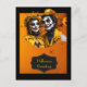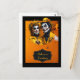 Postal Gorra floral de Halloween y pareja de caricatura d