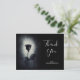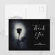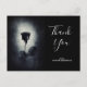 Una oscura y misteriosa tarjeta postal de agradecimiento de fiesta con una ilustración genial de una rosa negra de estilo goth / emo con sangre roja goteando en sus pétalos. Un fondo negro desgastado con un color beige en el centro que resalta esta rosa sombría y macabra.