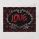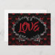 For the Gothic lovers, this unique Valentine's Day postcard has red hearts background with a large gray frame enclosing the word "LOVE"