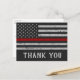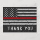 Tarjeta de agradecimiento a bombero delgado de la línea roja - bandera estadounidense con colores de la bandera de Fireman, diseño angustiado . Este agradecimiento de los bomberos es perfecto para agradecer a un bombero, o a los departamentos de bomberos. Personalice el interior a su bombero o departamento de bomberos favorito. DERECHOS RESERVADOS © 2020 Judy Burrows, Black Dog Art - Todos los derechos reservados. Bombero de la Línea Roja Delgada Gracias Postcard