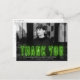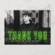 Moderna graduación gracias postal mostrando la foto horizontal del graduado con "Gracias" en letras de neón verde limón. Personalice la foto graduada gracias a la tarjeta postal añadiendo el nombre del graduado, el nombre de la escuela y el año de graduación. La foto de graduación gracias a que la postal se revierte para mostrar su dirección de retorno y tipeó un mensaje de agradecimiento (dejar en blanco para escribir a mano la propia).