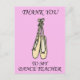 Un par de zapatos de ballet contra un fondo rosa pálido. Las palabras 'Gracias a mi profesor de danza' acompañan la imagen.