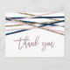 Estas gafas de marina, ruidosas y doradas gracias a la postal son perfectas para un boda moderno. El diseño de la moda se basa en unas líneas cruzadas en azul marino, un purpurina dorado de color rosa y champán con un aspecto geométrico. Personaliza la parte posterior de la tarjeta postal con tus nombres, tu dirección de retorno y un mensaje de agradecimiento. Como alternativa, deje en blanco la sección de plantillas de mensajes de agradecimiento para escribir a mano una nota personalizada cuidadosa en cada tarjeta después de su llegada. Estas tarjetas se pueden usar para un boda, una ducha de novia o cualquier evento especial. Atención: este diseño no incluye un verdadero purpurina de oro de champán. Se trata de un gráfico de alta calidad hecho para parecerse al shimmer de oro del champán.